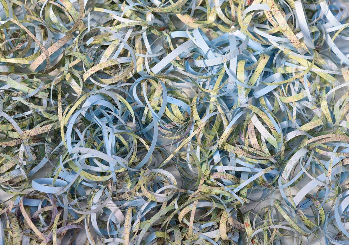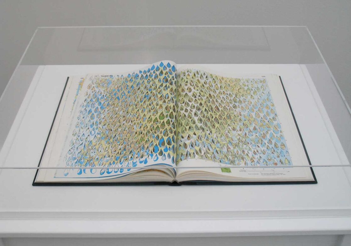 Hand cut world atlas.