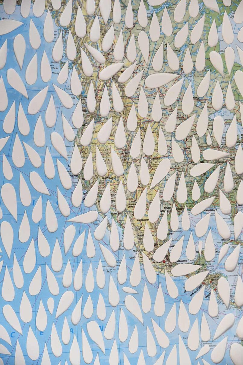 Hand cut world map. Shown at Decennium, Hestercombe Gallery, Cheddon Fitzpaine 22nd March – 7th July 2024. One in a series of map and atlas works that speak of a rapidly changing world and issues related to climate emergency.